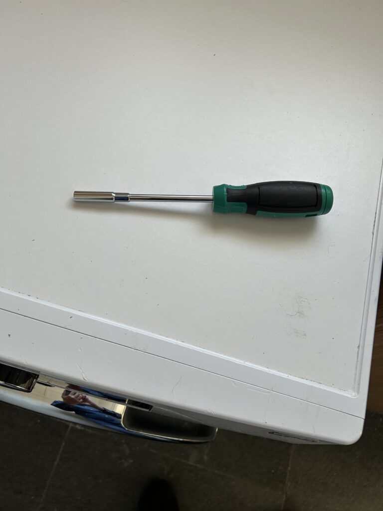 But taking the back off to get at the dryer’s vitals wasn’t going to be easy, I assumed. No way would they have put screws on it that an ordinary flathead or Philips head would be able to mess with. I leapt immediately to the Internet and discovered that what I needed was a ‘qaurter-inch hex nut driver’. Nut driver?