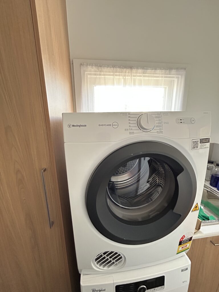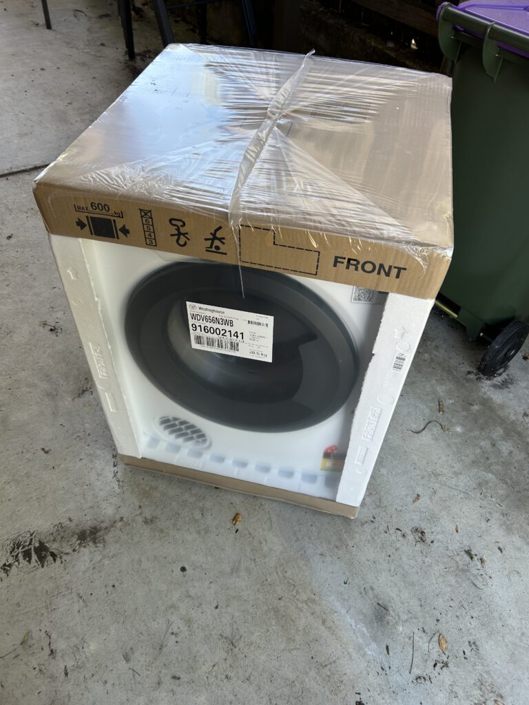 So I waved the delivery guys goodbye, explaining theat I didn’t get the ‘take away my old dryer’ option because the Good Guys website said the Ballarat store didn’t offer it. I signed my name on the guy’s phone reader thing, and we parted on good terms.